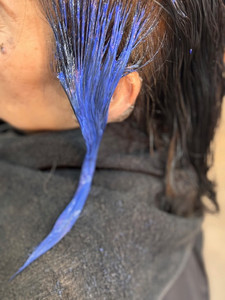 毛先の退色も気になりますので毛先までカラーします。